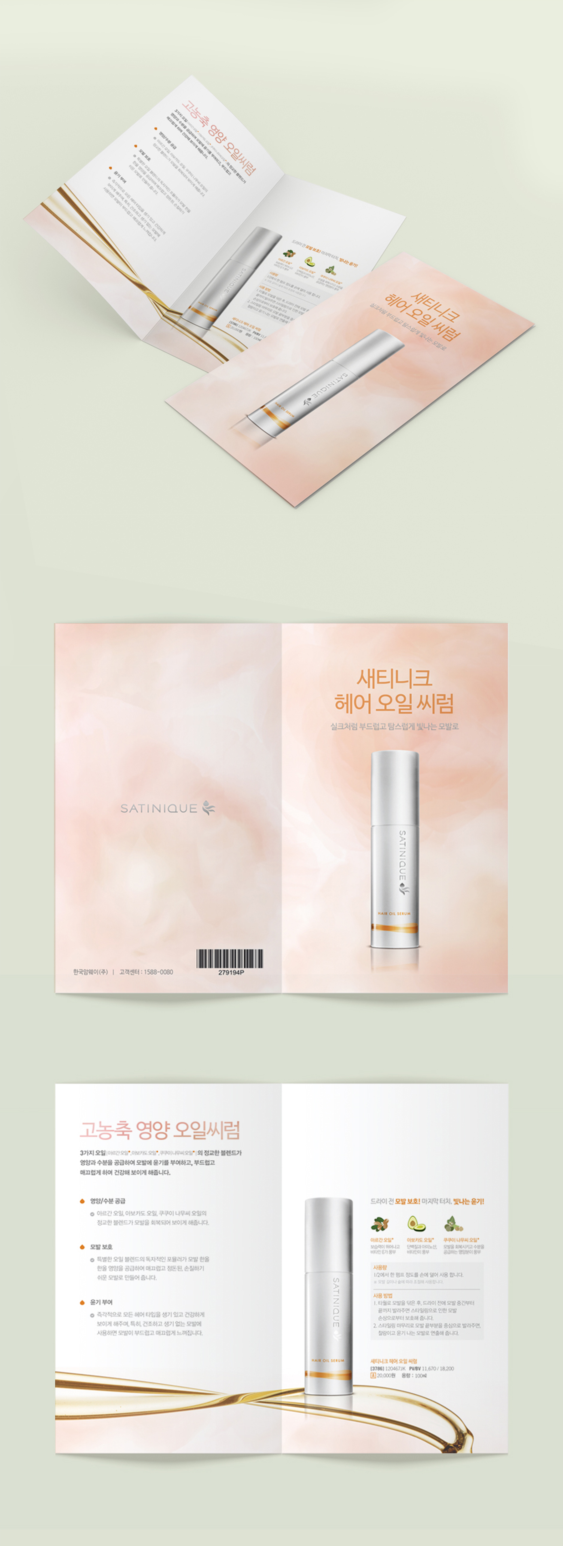 암웨이 새티니크 헤어 오일 씨럼(Satinique Hair Oil Serum) 리플렛 디자인을 진행했습니다.