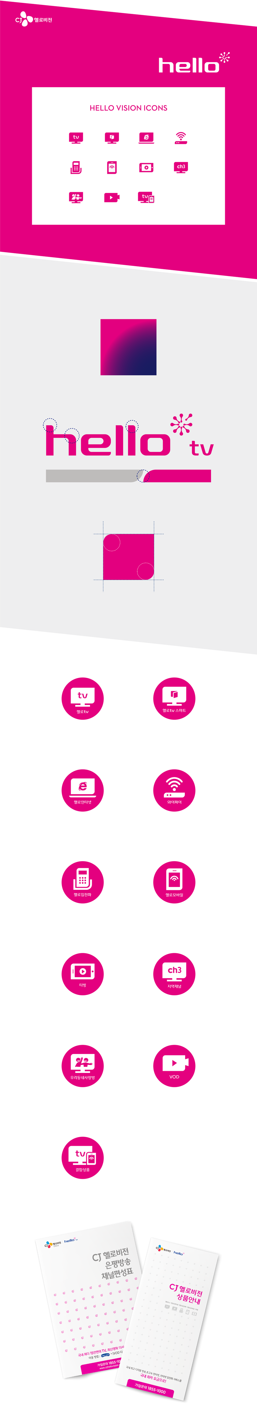 81819cj hello vision branding 2015.03 cj hello vision branding CJ 헬로비전 디자인 아이텐티티를 담은 아이콘과 리플렛, 브로슈어 등 브랜딩 작업을 진행했습니다.