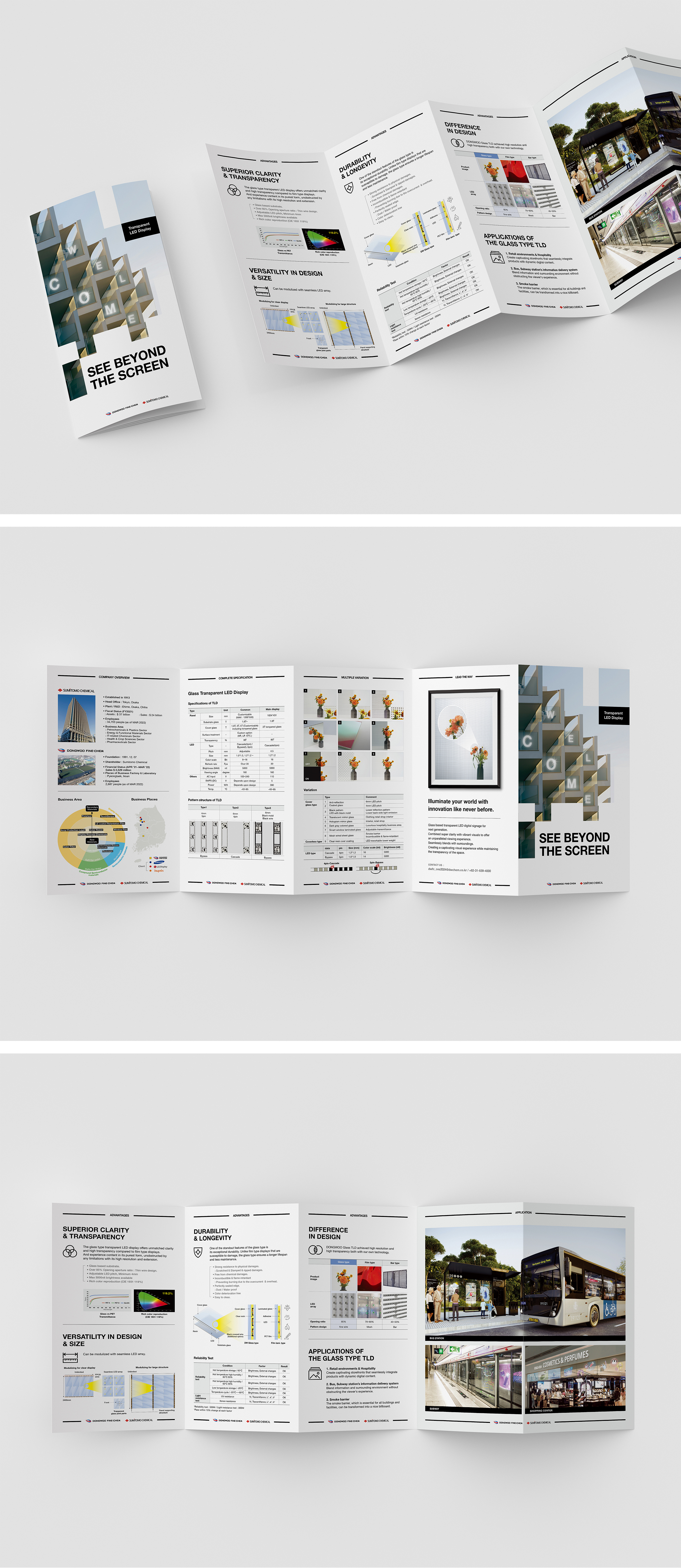 동우화인켐의 투명 디스플레이 G-TLD를 소개하는 홍보용 리플렛을 제작했습니다.