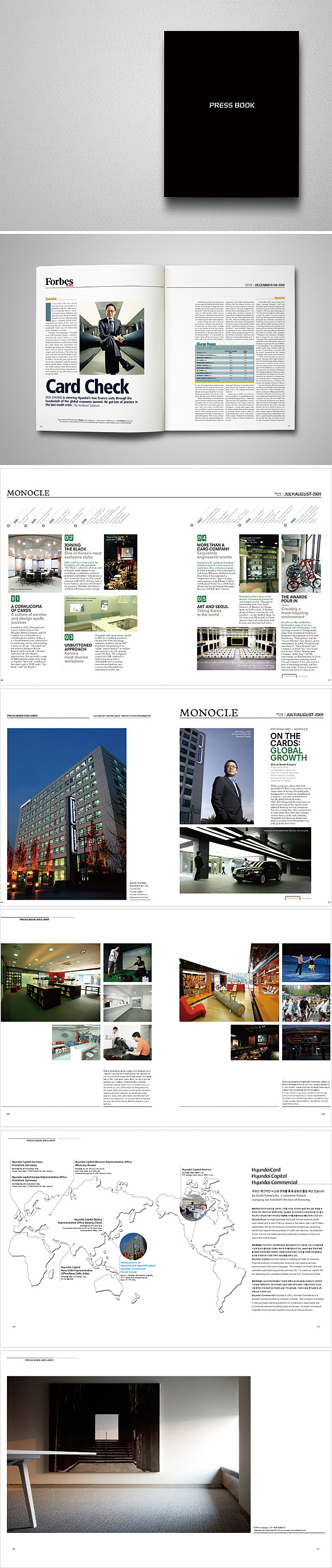 7910hyundai card press book 2009.07 현대카드 프레스북 Hyundai Card Press Book 현대카드의 2003년부터 2009년까지의 기사들과 광고, 매체에서의 기록을 정리해 보여주는 PRESS BOOK 입니다. 많은 매체들을 현태카드의 스타일로 정리하고, 뉴스 페이퍼 디자인을 적용해 PRESS BOOK의 아이텐티티를 만들었습니다. 하드커버 양장 제본으로 제작해 고급스러움을 한층 높였습니다.