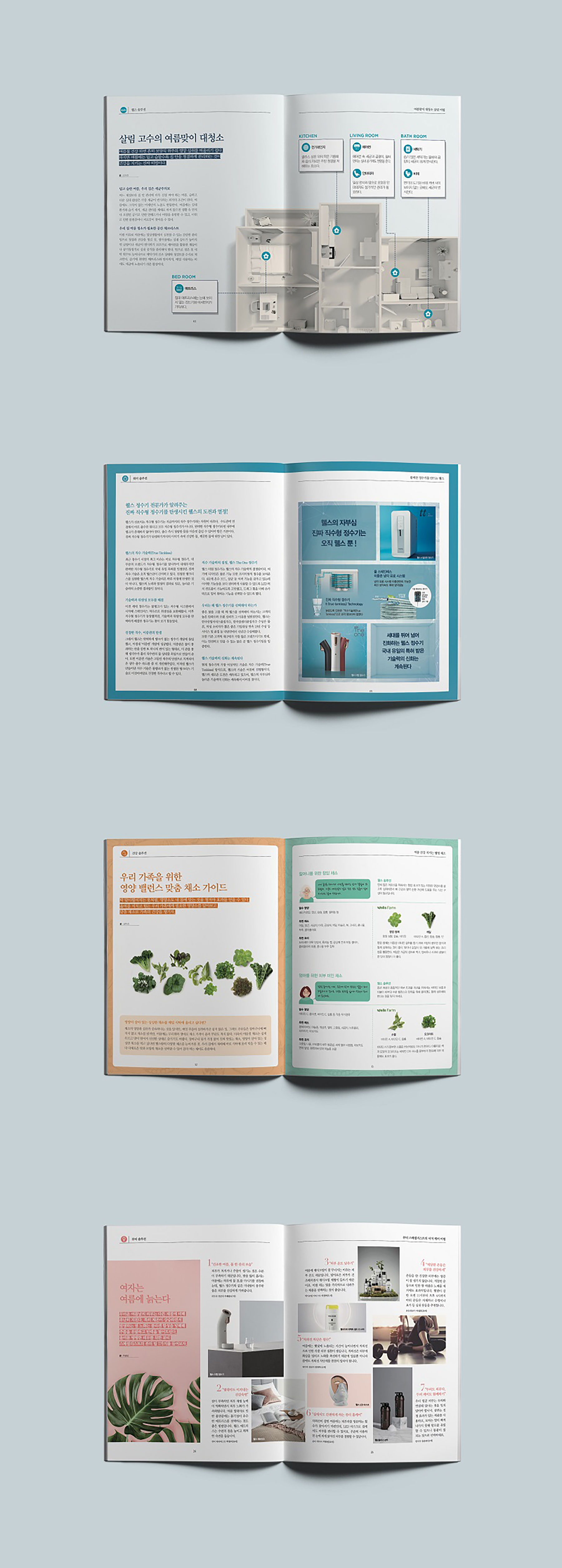 매거진 형식의 카탈로그로 제품 소개 뿐 아니라 푸드 레시피, 생활 건강 상식, 인테리어 팁 등 다양한 컨텐츠를 담았습니다.