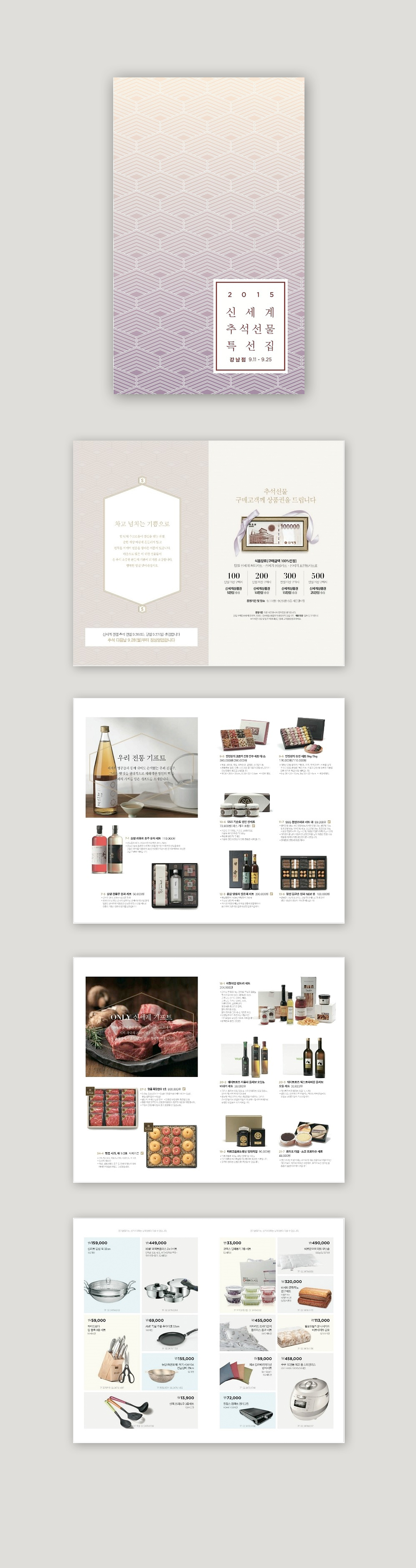 신세계백화점 2015 추석선물 특선집 제작 프로젝트를 진행했습니다. 추석 명절 시즌에 맞춘 선물 추천 콘텐츠를 카테고리별로 체계적으로 구성했습니다. 전통적이면서도 세련된 비주얼 톤을 적용해 시즌 감성을 전달했습니다. 제품 사진과 설명을 조화롭게 배치하여 정보 전달력과 가독성을 강화했습니다. 행사성 프로모션 홍보물로서 소비자의 관심을 유도할 수 있는 디자인으로 완성했습니다.
