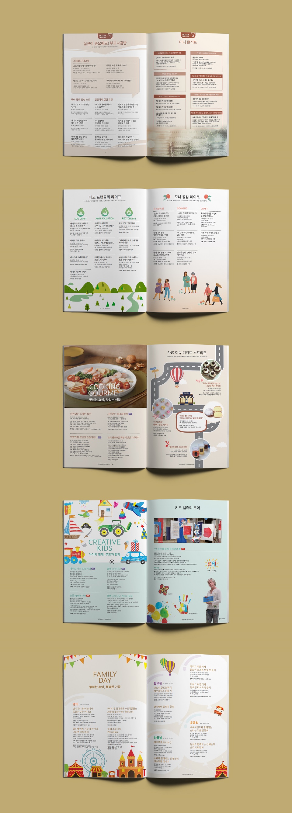 각개 다방면 강좌들의 성격에 맞게 테마별로 아기자기한 일러스트와 이미지들을 활용해서 디자인을 하였고,