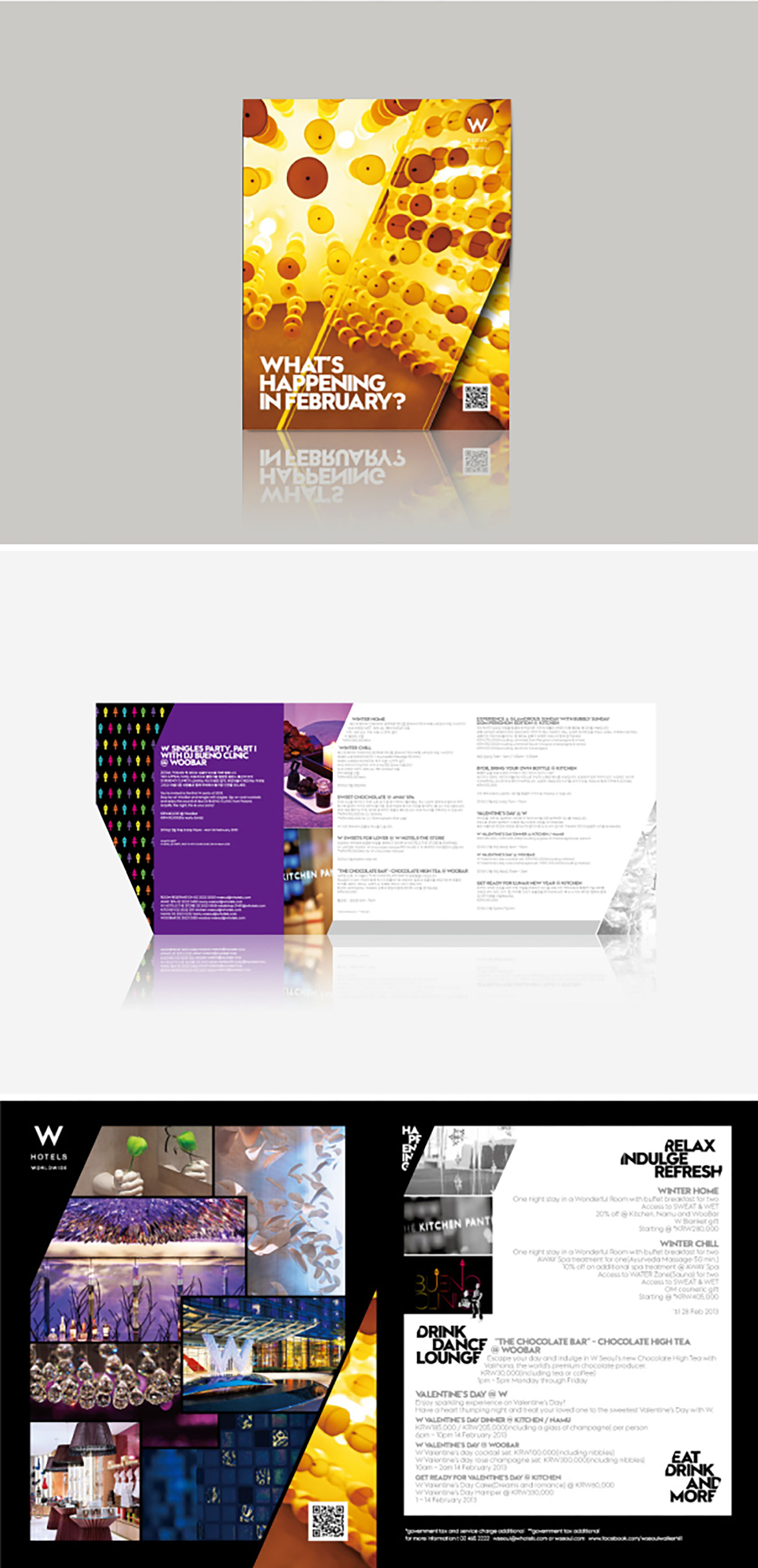매달 진행되는 행사와 이벤트 정보를 담아낸 리플렛으로 W 서울 워커힐의 아이덴티티를 담아 감각적인 디자인으로 표현했습니다.
