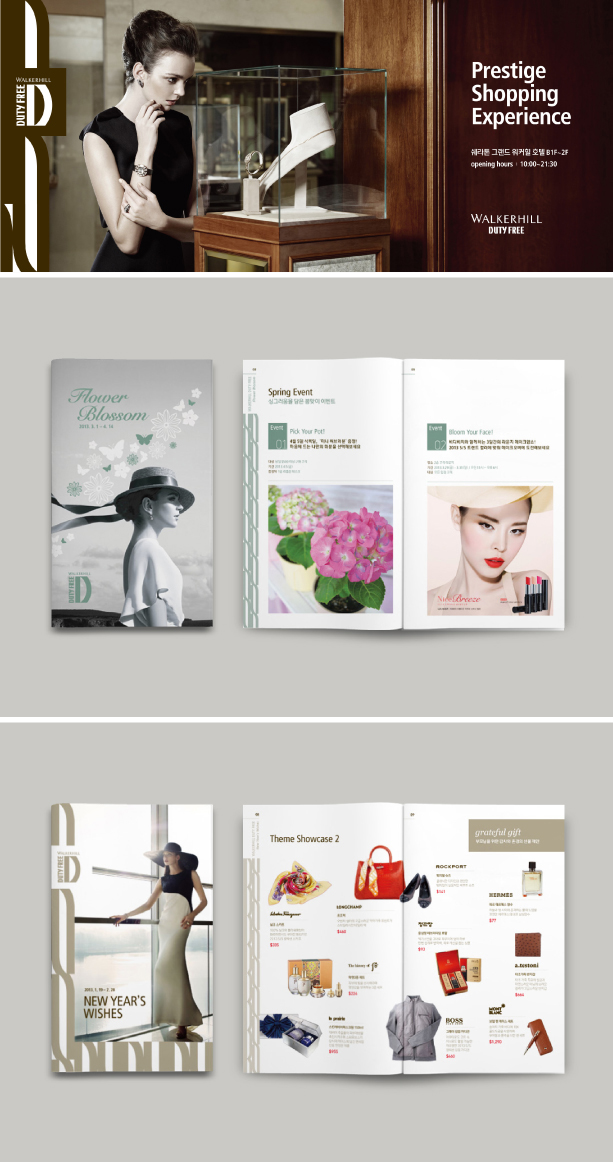 워커힐 면세점에서 진행하는 프로모션과 다양한 상품들을 소개하는 브로슈어, 리플렛, 행사 DM, 배너 등을 디자인, 제작했습니다.